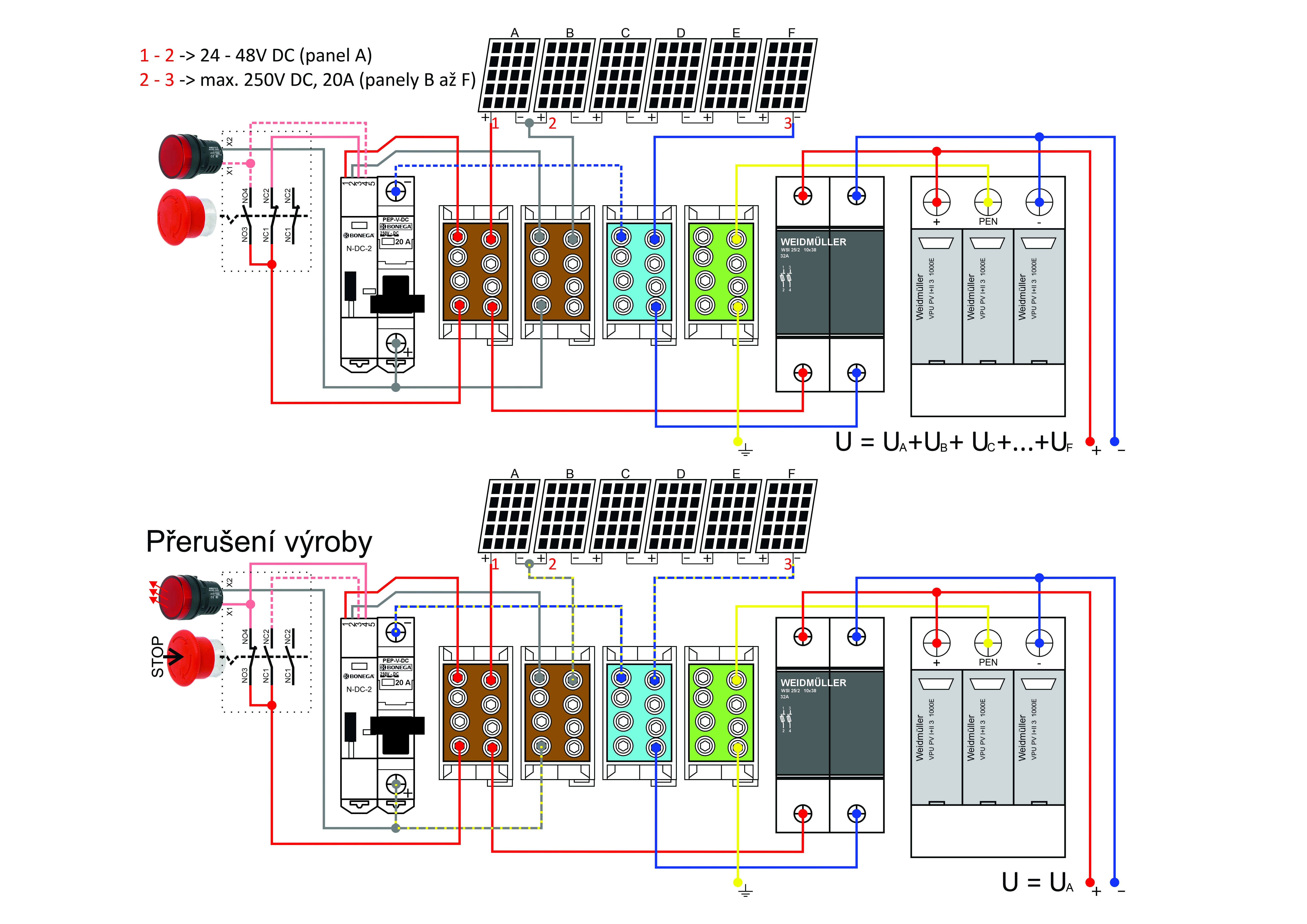 Sepnutí obvodu znamená něco jiného u jističe a něco jiného u automatického nahazovače či jiných zařízení. U každého vstupu lze definovat barvu i popis stavů tak, aby přesně odpovídaly realitě.